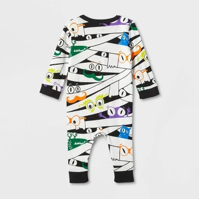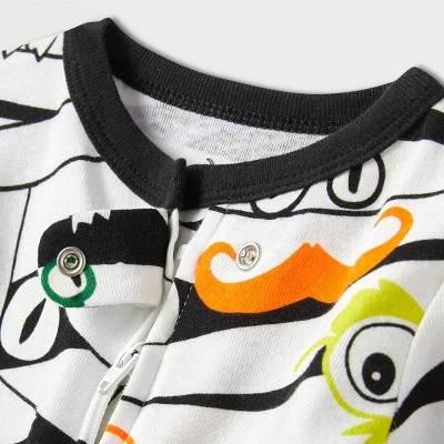 Surprise everyone with a cute mummy at the Halloween party by dressing them up in the Glow-In-The-Dark Mummy Halloween Matching Family Pajama from Hyde & EEK! Boutique™. These white one-piece pajamas feature an illustration of bandages, along with eyes that glow in the dark for a spooky look. Made with 100% cotton fabric in a fitted fit, these pajamas offer softness and comfort. The front half-length zipper closure allows easy dressing and changing, and the snap tab helps protect their chin from scratches. Have your whole family wear the PJ sets from the Glow-In-The-Dark Mummy Halloween Matching Family Pajama Collection to create a coordinated look for Halloween photo-ops.