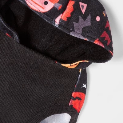 This Basic Velour Toss Pumpkins Cat and Dog Hoodie from Hyde & EEK! Boutique™ is a perfect pick for helping your furry friend celebrate Halloween. Designed to fit cats or dogs, this black pet hoodie features an allover printed pattern with Halloween designs like pumpkins, cats, ghosts, bats and more. Whether you’re hosting a Halloween gathering or taking your pet out trick-or-treating, this cute Halloween hoodie is sure to be a hit.