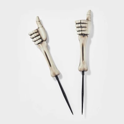 - “Thumbs up” skeleton hands lend a silly yet spooky vibe to your outdoor space