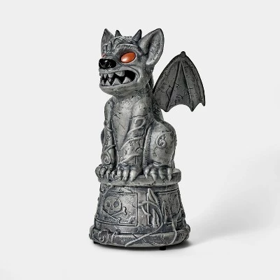 Welcome trick-or-treaters to your home with this Animated Gargoyle Halloween Decor from Hyde & EEK! Boutique™. Made from plastic material, this fun decorative prop showcases a scary looking gargoyle that has eyes that light up thanks to the included batteries. Designed for outdoor use, this gargoyle decorative prop is sure to amp up your seasonal display.