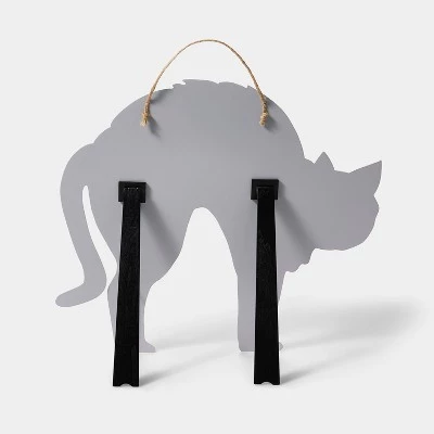 Add a spooky-cute accent to your Halloween decor with this Cat Wood Porch Halloween Sign from Hyde & EEK! Boutique™. Designed in the shape of a black cat with green eyes, this Halloween sign features adjustable wooden bars at the back to let it stand on any flat surface. Best of all, it comes with an attached string that allows it to be hung from any hook or nail. Keep it in your porch with other Halloween signs or figurines for eye-catching appeal.