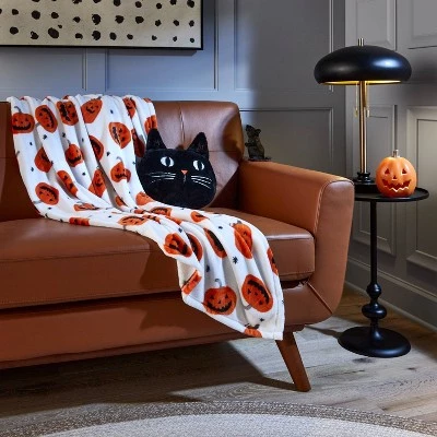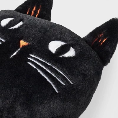 Add some Halloween-style fun to your home decor with the Faux Fur Cat Halloween Novelty Throw Pillow from Hyde & EEK! Boutique™. This black cat novelty throw pillow is made in a faux-shearling design and comes complete with eyes and nose for a realistic appeal. Place it on the sofa or couch with a pumpkin throw blanket to delight your friends and family all season long.
