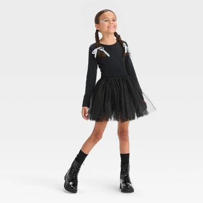 This Halloween Costume Tutu from Hyde & EEK! Boutique™ in a solid black color features long sleeves and a flouncy mesh skirt with an elastic waist. The lightweight fabric with soft lining under the tulle offers comfy wear, while the pullover round neckline makes dressing easy. They can wear this dress with black shoes and Halloween accessories a to complete their Halloween outfit.