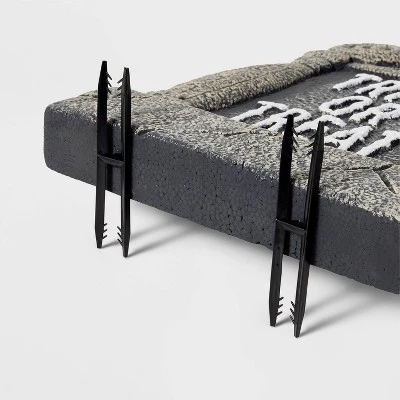 Greet trick-or-treaters as they approach your house with this Light-Up Pumpkin Trick or Treat Foam Halloween Decorative Tombstone from Hyde & EEK! Boutique™. This foam gravestone features a carved weathered base with a pumpkin on top and the text “Trick Or Treat” embossed on the front. The battery-operated decoration has a light-up design to create a spooky glowing effect, and it’s suitable for both indoor and outdoor use. Place it on your front porch or next to your garden graveyard scene to complete your Halloween display.