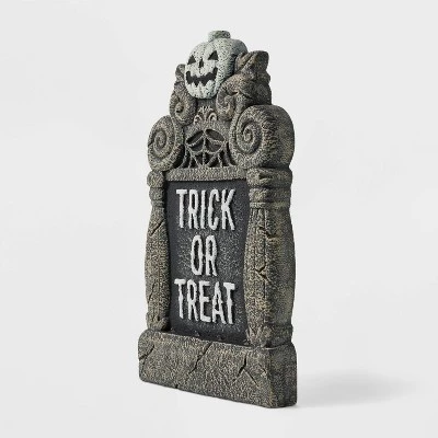 - Pumpkin trick-or-treat foam tombstone prop