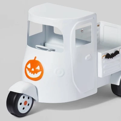 Bring vintage style to your seasonal scene with the Metal Cream Truck Halloween Decor from Hyde & EEK! Boutique™. The decorative prop features a metal truck with a jack-o-lantern image on the front and bats graphic on the side to liven up your decor. Designed for indoor use, it’s perfect for tabletop placement, whether you display it alone or as part of a larger Halloween-themed display.