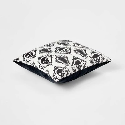 Bring the Halloween holiday spirit to life in your home with the Reversible Skull Halloween Decorative Pillow from Hyde & EEK! Boutique™. This reversible decorative pillow features a skull crafted in threadwork on a black backdrop on the one side, and allover skull and coffin illustrations on the other side for a spooky look. Made with soft fabric, this black decorative pillow makes a perfect accent piece in your sheltered outdoor or indoor space.