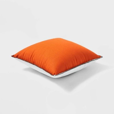 Spruce up your indoor seating in spooky style with this Smiling Pumpkin Halloween Square Throw Pillow from Hyde & EEK! Boutique™. Made from a soft cotton-linen blend with comfortable filling for cushioned comfort, the decorative throw pillow is adorned with smiling jack-o’-lanterns across the front to amp up your furniture for festive celebrations. The design is finished with knitted detailing on the edges for ornate flair.