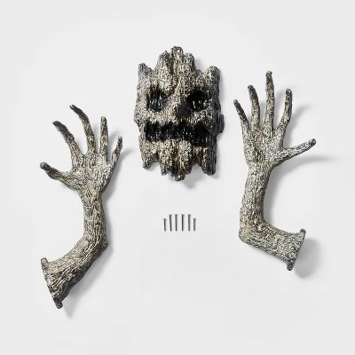 - Tree decorating kit comes with 2 arms and creepy face to attach to any tree trunk