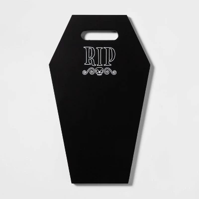 Haunt family or guests during the Halloween season while keeping them well-fed by serving charcuterie with the Tombstone Wood Charcuterie Halloween Tray from Hyde & EEK! Boutique™. Designed in a tombstone-like shape, this black tray features the text “RIP” to make it suitable for your Halloween table setting. Place this wooden tray alongside a skeleton-print placemat and add black plates and a candleholder for a spooky, festive tablescape.