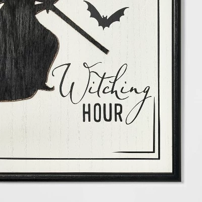 Add a bewitching vibe to your decor with the Witching Hour Halloween Wall Sign from Hyde & EEK! Boutique™. This black-and-white wall sign features the text “Witching Hour” along with an illustration of a witch and broom for a spooky look. Made with wood, this vertical wall sign makes a striking display on the wall above a tabletop, mantel or anywhere else — just add other decorative props to complete your seasonal decor.