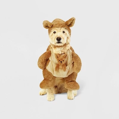 Your furry friends will be hopping with joy as they join you for trick-or-treating fun dressed in the Kangaroo with Toy Joey Dog and Cat Costume from Hyde & EEK! Boutique™. Made from a soft, lightweight fabric, this fuzzy kangaroo costume covers your pet’s head, neck, chest and front legs, and features a detached headpiece and toy Joey for a completed look. Plus, the suit and headpiece were designed with hook-and-loop closures for secure wear and easy on/off. Intended for dogs and cats, this adorable kangaroo costume is sure to get people talking and tails wagging.