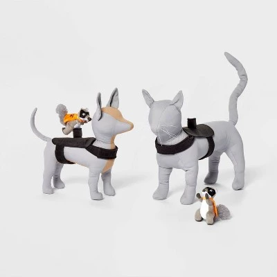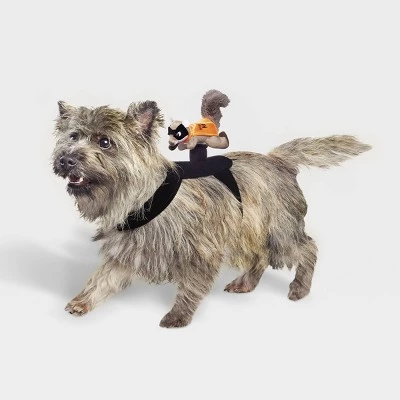 Your pet will be ready to bring superhero flair to Halloween festivities by dressing up in the Rider Wings Superhero Squirrel Cat and Dog Costume from Hyde & EEK! Boutique™. This rider wings black costume for pets features a squirrel with a costume bearing the message “Halloween hero” for seasonal fun. Made with a soft and lightweight fabric, this costume fits nicely around their body with the hook-and-loop closure, and can be hand washed to clean.