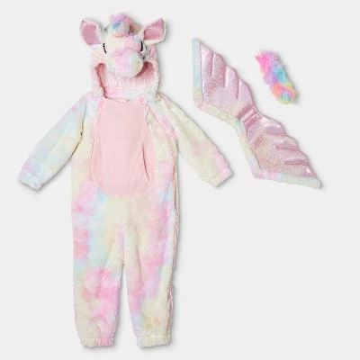 This Adaptive Plush Unicorn Halloween Costume Jumpsuit from Hyde & EEK! Boutique™ will have your little one looking their cutest and feeling comfy and confident during trick-or-treating. This garment has been designed with discreet functional openings to allow access to tubing, small objects or other devices. Functional openings may be hidden inside a pocket or behind a flap to provide more privacy for your needs. Plus, a side zipper opening allows for easier dressing and can provide access to the body or other objects and devices. Made from soft, lightweight fabric in rainbow colors, the costume includes a full-body jumpsuit, a unicorn hood with nose, eye, ear and horn accents, and attachable wing and tail accessories.